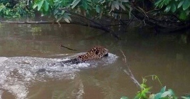 Picture of a jaguar John nearly hit when paddling a kayak near the lodge he took people to in Ecuador